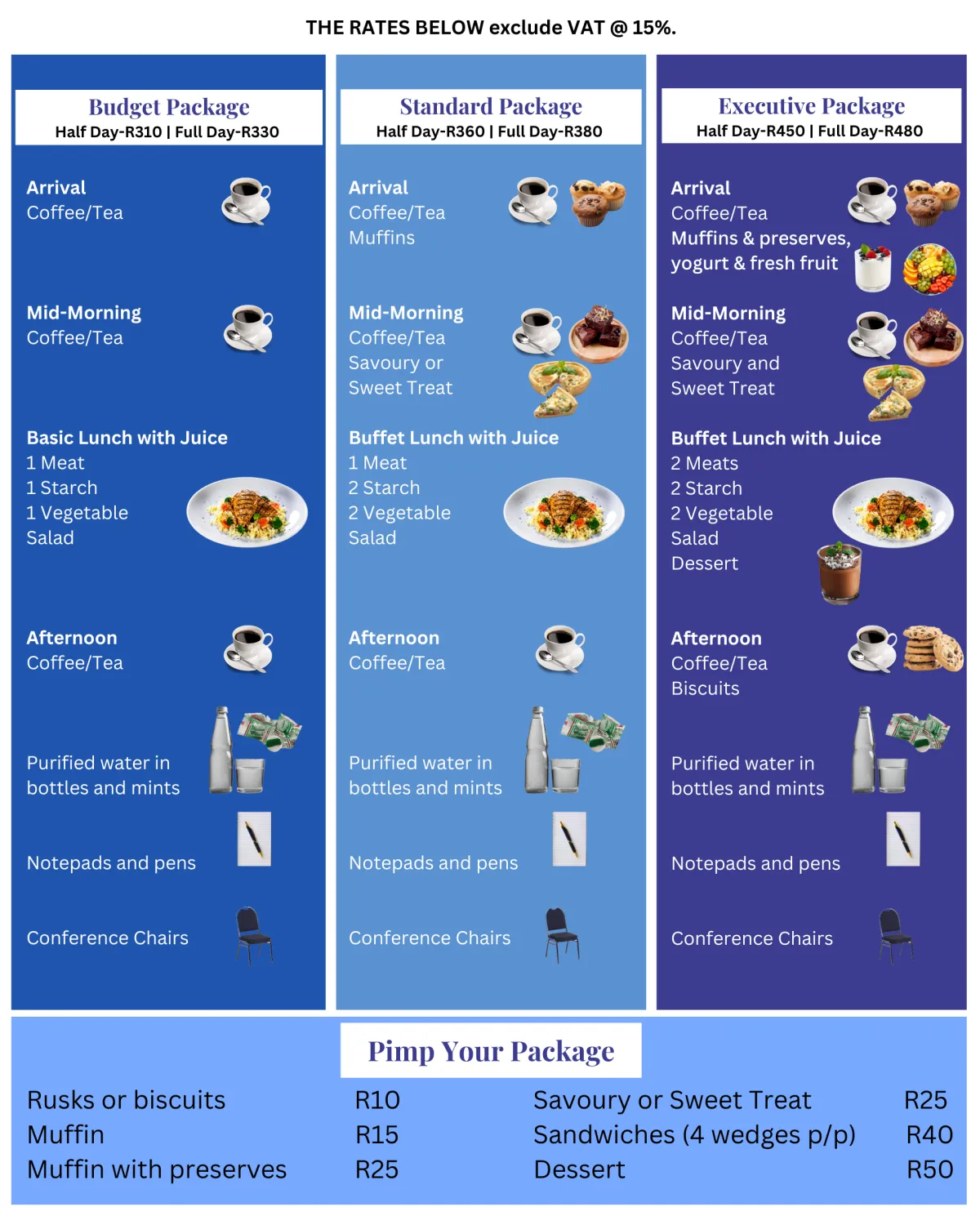 We appreciate the importance of high quality conferences and functions with personal attention. Well planned Catering to compliment the above is taken seriously. To ensure we can consistently provide catering of high quality and value for money to our customers, our in-house, industrialised kitchen is maned by our own on-site team of experienced catering staff.